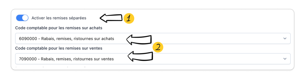 Voici un exemple avec ventilation comptable séparée des remises activée et non activée :