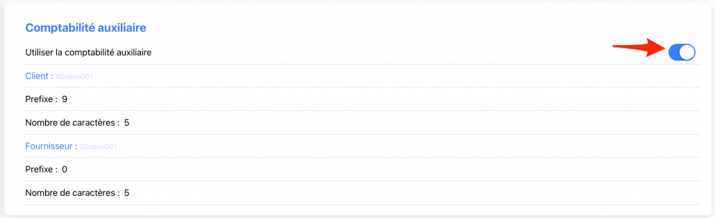 Une fois la comptabilité auxiliaire activée et le paramétrage du format de vos codes auxiliaires effectué, le code est généré automatiquement.